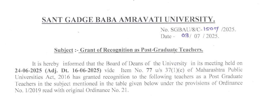 | Recognized as PG Teacher | Dr. J. M. Patil Recognized as PG Teacher in the Subject Computer Science & Engineering and Information Technology by SGBAU Amaravati. |