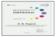 | Wipro certified faculty | Prof. S. B. Pagrut Awarded the title of Wipro Certified Faculty in Database Solutions Expertise |