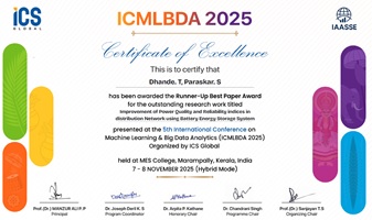 Mr.Tushar Dhande and Dr. S.R. Paraskar Received Runner up best paper Award in ICMLDBA 2025-26 |