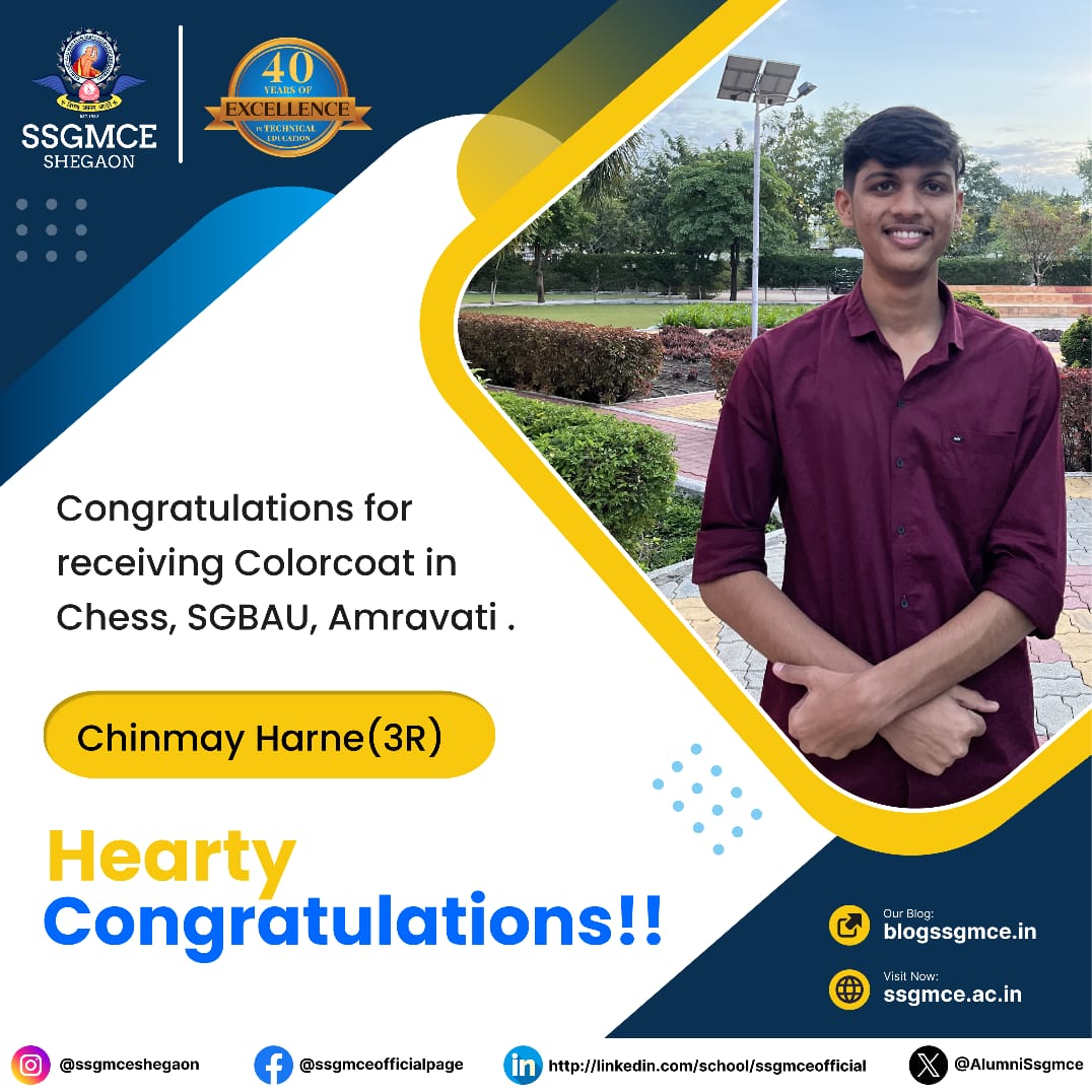 | University Color Holder | Chinmay Harne 3rd Year Student of Computer Science and Engineering Department Selected as a University Color Holder in Chess | ![]() |