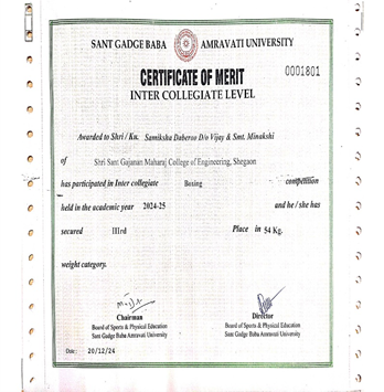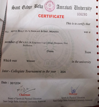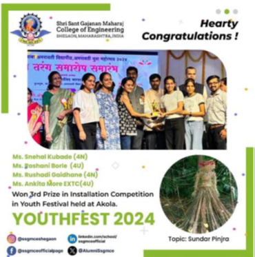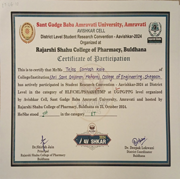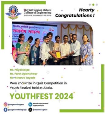 Mr. Tejas Kale along with other dept. students clinched the second prize at Techkriti 2024, hosted by IIT Kanpur. Their exceptional drone operation skills earned praise for dedication and innovation, reflecting both the club’s talent and SSGMCE’s commitment to cultivating excellence among its students. |