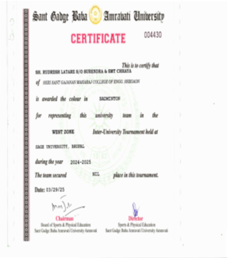 Rudresh Latare received University Colour Coat in Badminton |
